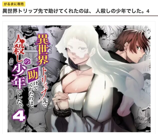 表を見ていただいたとおり、「異世界トリップ先で助けてくれたのは、 人殺しの少年でした。4」は、DLサイトで独占先行配信中です。